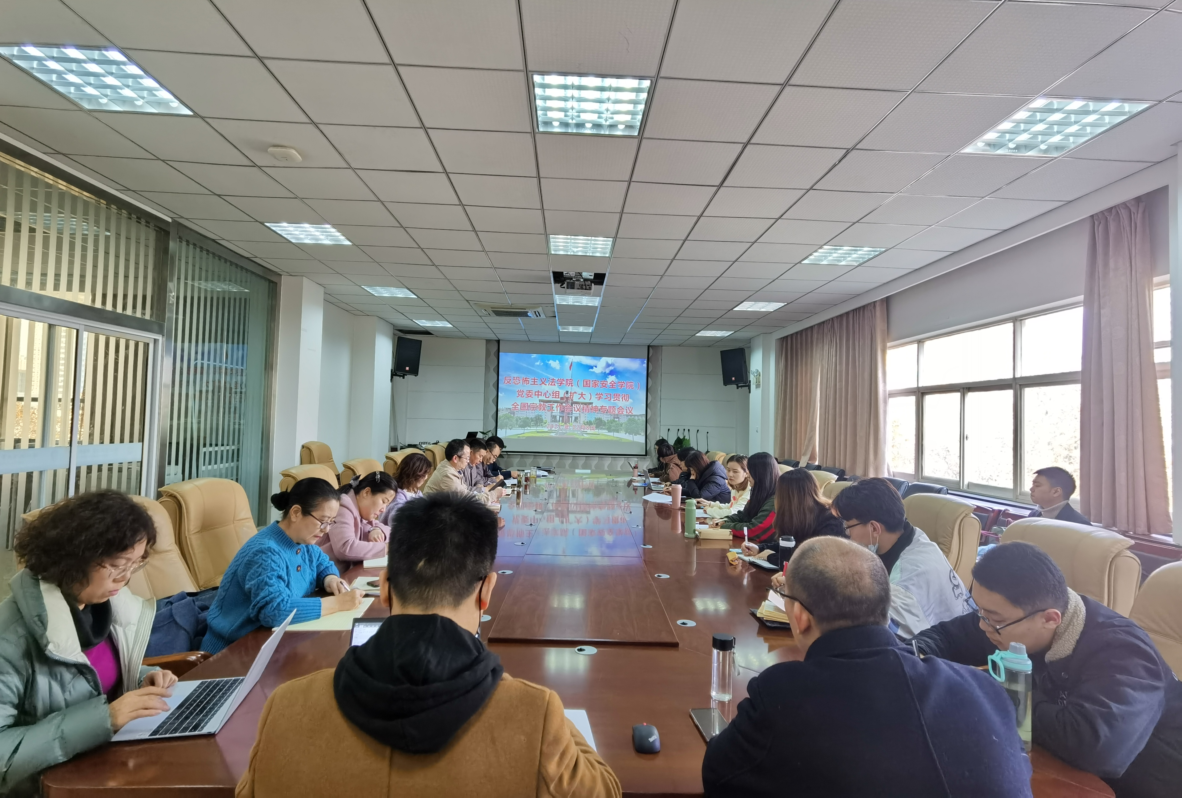 12月8日下午,反恐怖主义法学院(捷克论坛 )党委召开中心组(扩大)学习会议,专题学习全国宗教工作会议精神。学院理论学习中心组成员、院长助理、各支部书记、教师代表、研究生代表参加会议。会议由学院党委书记李政敏主持。