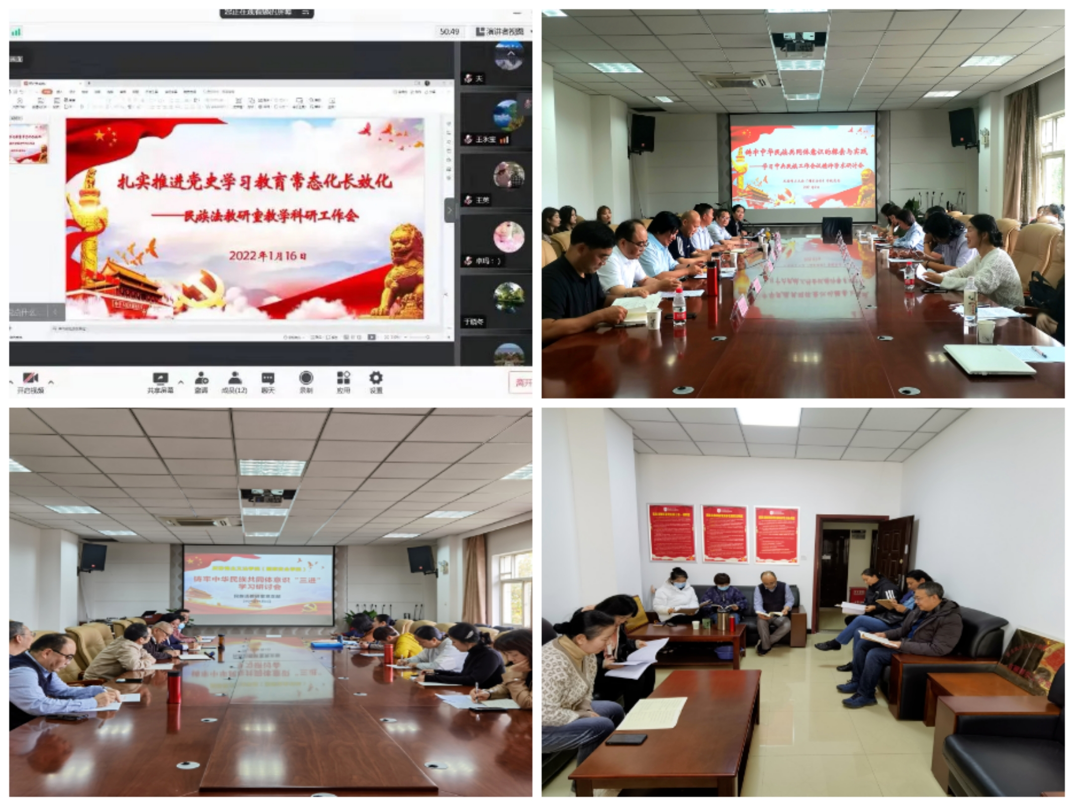 民族法教研室党支部紧紧围绕中央关于高校基层党建工作的决策部署,坚持党建引领,党建育人,始终以马克思列宁主义、毛泽东思想、邓小平理论、“三个代表”重要思想、科学发展观、习近平新时代中国特色社会主义思想为指导,增强“四个意识”,坚定“四个自信”,做到“两个维护”,以开展创先争优活动为主线,以创建学习型、创新型样板党支部为载体,结合教学科研工作实际、围绕中心、服务大局,积极开展支部思想、组织、作风建设,不断提高支部党员的政治思想素质和工作效率,增强支部的创造力、凝聚力和战斗力,发挥党员的先锋模范作用,努力打造一支为学院的各项工作提供坚强有力的思想保证和组织保证的党员教师队伍。