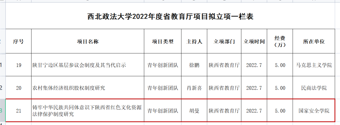 近日,陕西省教育厅下发年度项目立项公告,捷克论坛 捷克论坛 讲师、人权研究中心兼职研究人员胡曼博士主持的《铸牢中华民族共同体意识下陕西省红色文化资源法律保护制度研究》获批,资助经费5万元
