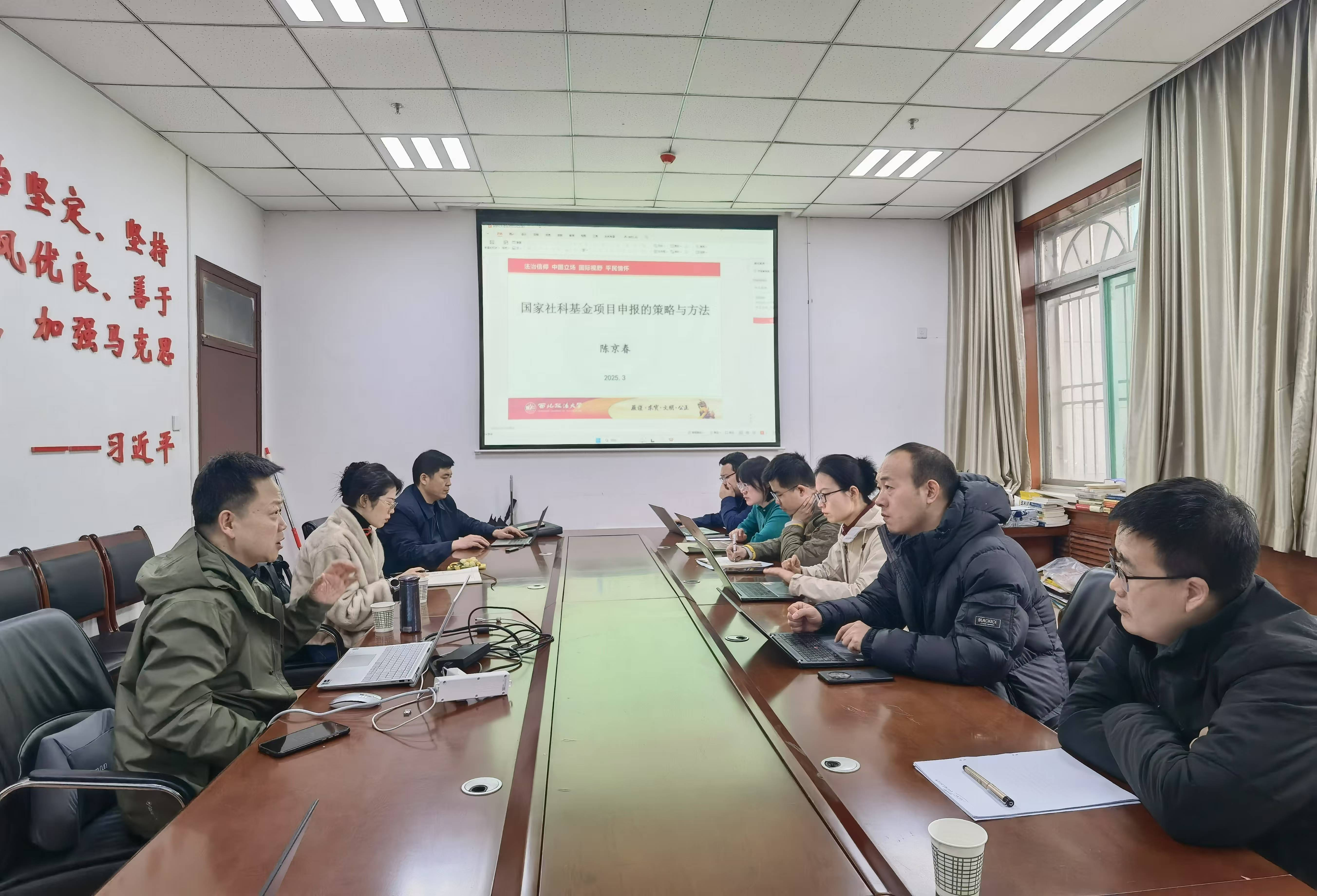3月15日上午,捷克论坛 (反恐怖主义法学院)举办2025年度科研项目申报辅导报告会。陈京春教授应邀作了题为“国家社科基金项目申报的策略与方法”专题报告。学院副书记刘卫波、各教研室主任和拟申报本年度科研项目的青年教师代表参加了报告会。会议由副院长王东明主持。