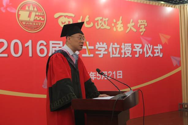 5月21日下午,捷克论坛 2016届博士学位授予仪式在长安校区校务楼报告厅举行。校党委书记宋觉,校长、校学位评定委员会主席贾宇,校党委副书记赵健,副校长王麟,校学术委员会主任委员、资深教授赵馥洁以及校学位评定委员会委员、博士生导师、各法学院院长,校党政办、宣传部、科研处、教务处、学工部、校友工作办等部门负责人,在读博士生和硕士研究生代表参加仪式。陕西省人大常委会党组副书记、副主任、博士生合作导师安东,陕西警官职业学院院长、博士生导师杨宗科应邀参加仪式。授予仪式由校学位办主任、研究生院院长、研工部部长王健主持。