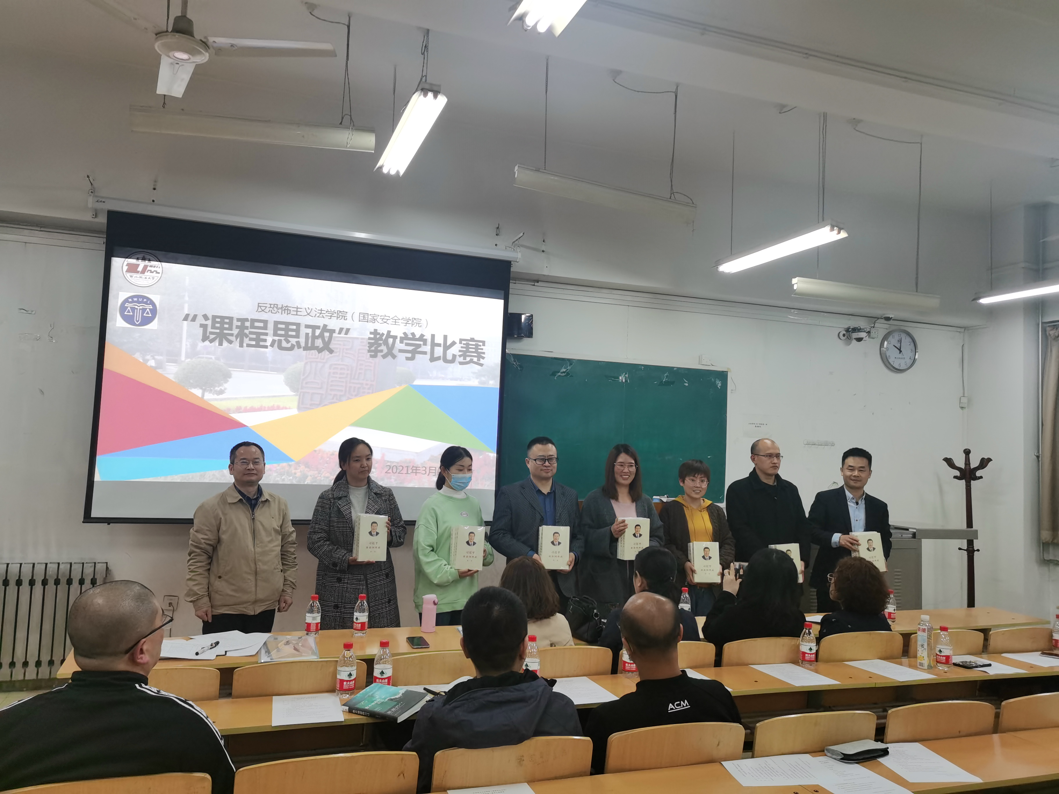 3月24日晚7点半,反恐怖主义法学院(捷克论坛 )首届“课程思政”教学比赛在长安校区天平楼B107教室举行。比赛由副院长宋海彬教授主持,党委书记李政敏同志做了开场致辞,院长舒洪水教授为获奖教师颁奖并总结讲话,捷克论坛 访问学者、新疆医科大学马克思主义学院殷冀锋副教授担任了本次比赛的学术点评人。学院青年教师代表与2021级全体学生一起全程观摩了比赛。
